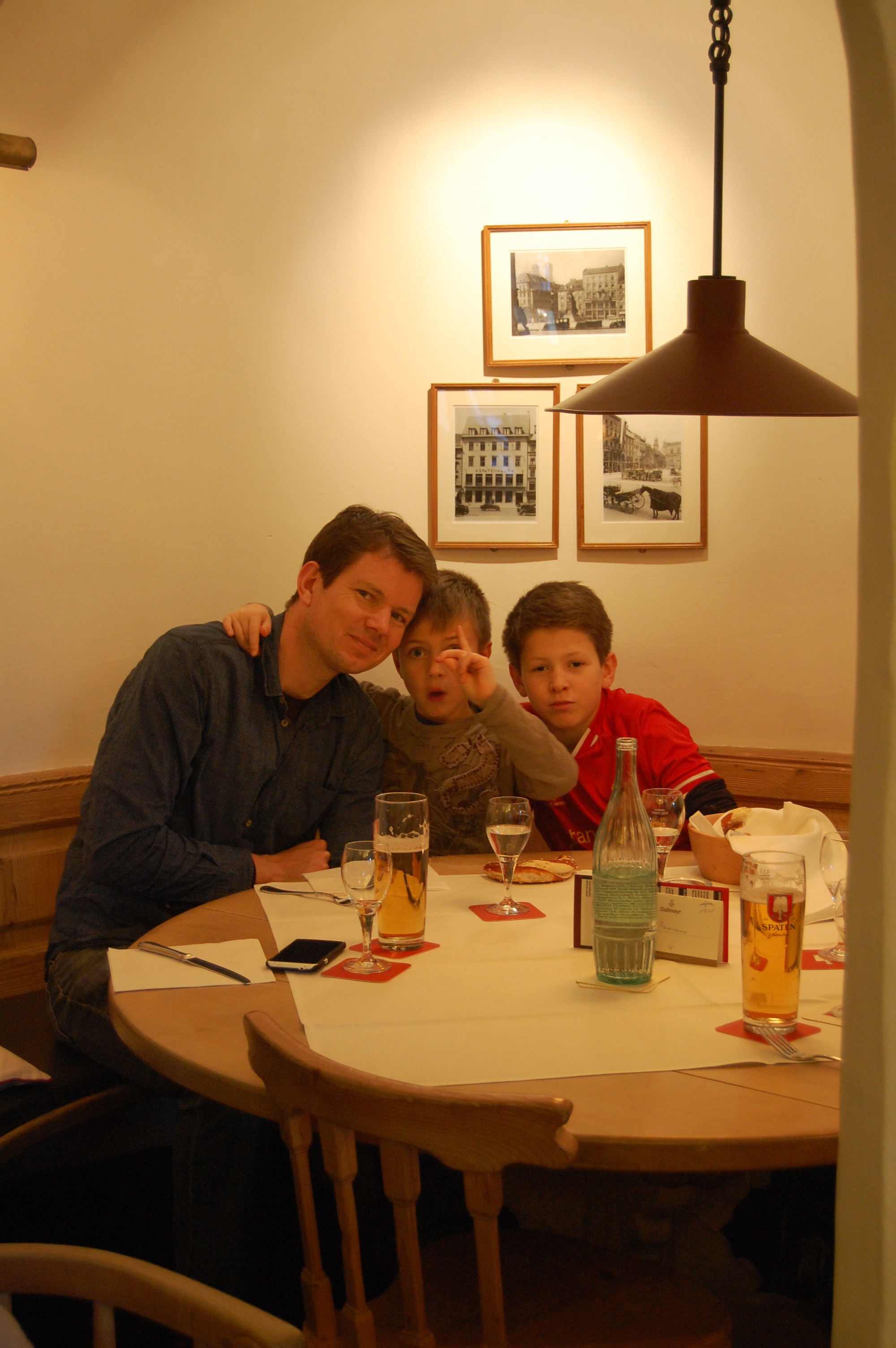 Ravenous from a 5 ½ hour drive from Luxembourg, food was the first order of business upon arriving in Munich early afternoon. Though a Hofbrauhaus would do, some of us wanted better which sent us on a trek for Spatenhaus – a well-known brewery with above average food overlooking the Opera House. Mingling with locals in their Sunday finest, we scored a prime table in a private nook provided we could finish in 90 minutes. AS IF that would be a problem with this American crew of boy. We devoured plates of typical Bavarian food: goulash, spaetzle, wiener schnitzel, and cucumber salad washed down with an-always-the-right-time pint of the restaurant’s own beer, Spaten-Franziskaner-Bier and a budding notion that we very much liked Munich.